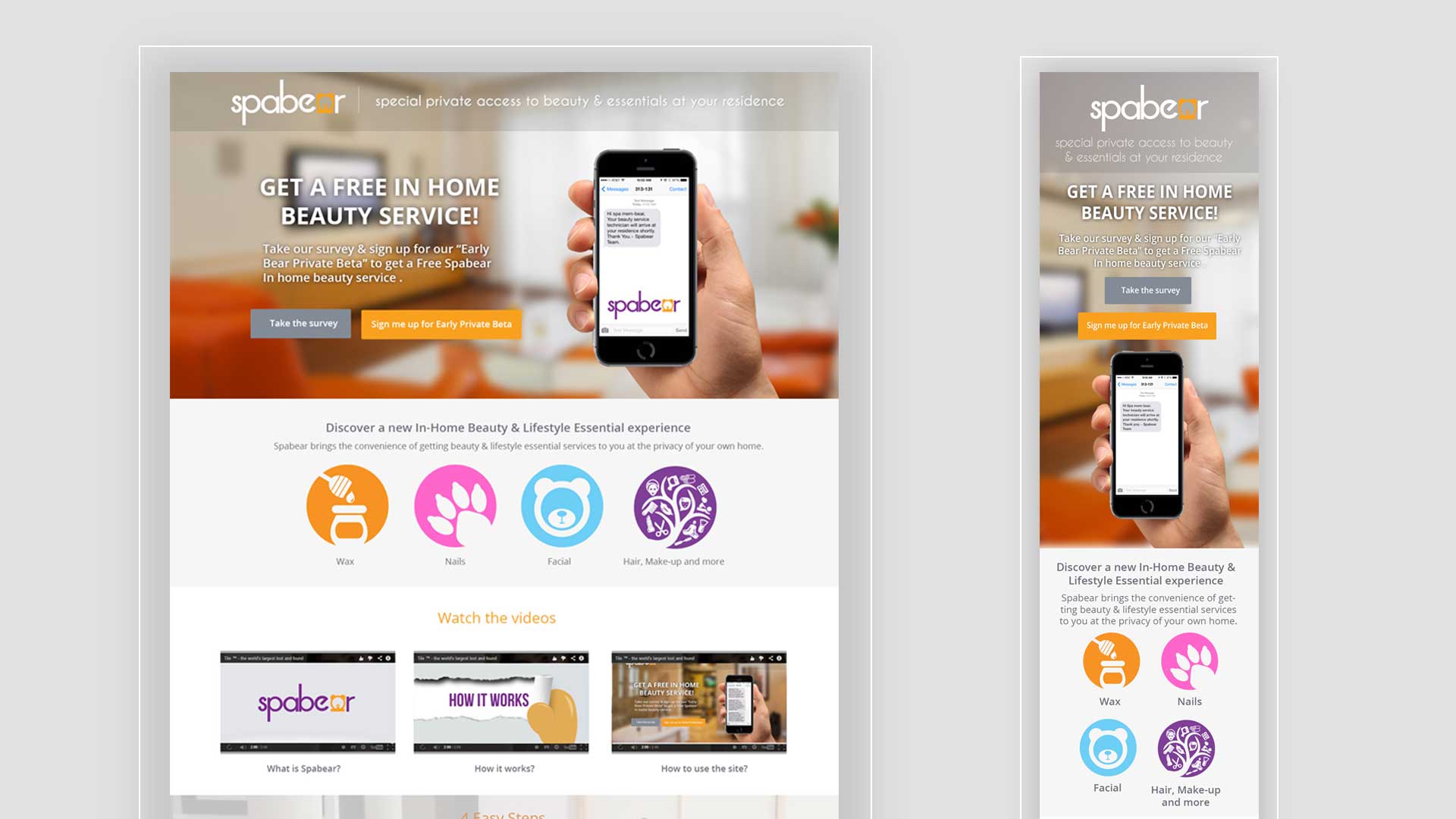 Part of the promotion of Spabear is sending MMS messages. Here are some of the GIF animations I created with Photoshop for message blast. One was sent during the holiday season, and the other for launching.